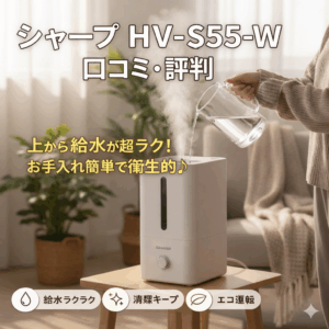 シャープのハイブリッド式加湿器、HV-S55-Wの口コミや評判についてご紹介しますね。